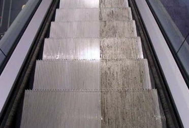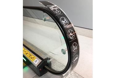 Protetor Acrílico de segurança para laterais de escada rolante.