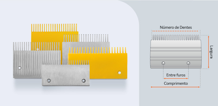 A principal função do pente é garantir que as roupas, sapatos ou objetos pessoais dos usuários não fiquem presos entre os degraus da escada rolante e a estrutura subjacente. Ao evitar obstruções, o pende ajuda a prevenir acidentes e a manter a operação contínua e segura da escada rolante.